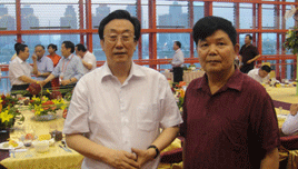 時(shí)任河南省人民政府省長(zhǎng)郭庚茂先生(左)與臺(tái)州商會(huì)支部書記、《百花散》傳人梅安富先生合影